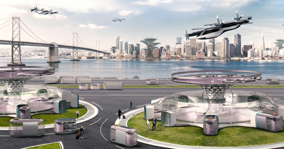The airports of the future for air taxis and delivery drones might be a different story. They’re supposed to be flexible and mobile, and look similar to those in this visualization: sci-fi-like landing pads, aka hubs, that can be installed and moved within a few days to places where they’re more urgently needed such as crisis zones, large-scale public events, heavily congested cities, and so on. For Schaeffler, the drone market has high potential. Besides supplying bearings and electric motors for the VTOL (vertical take-off and landing) systems, the people at the global technology group can imagine delivering entire propulsion units for them.